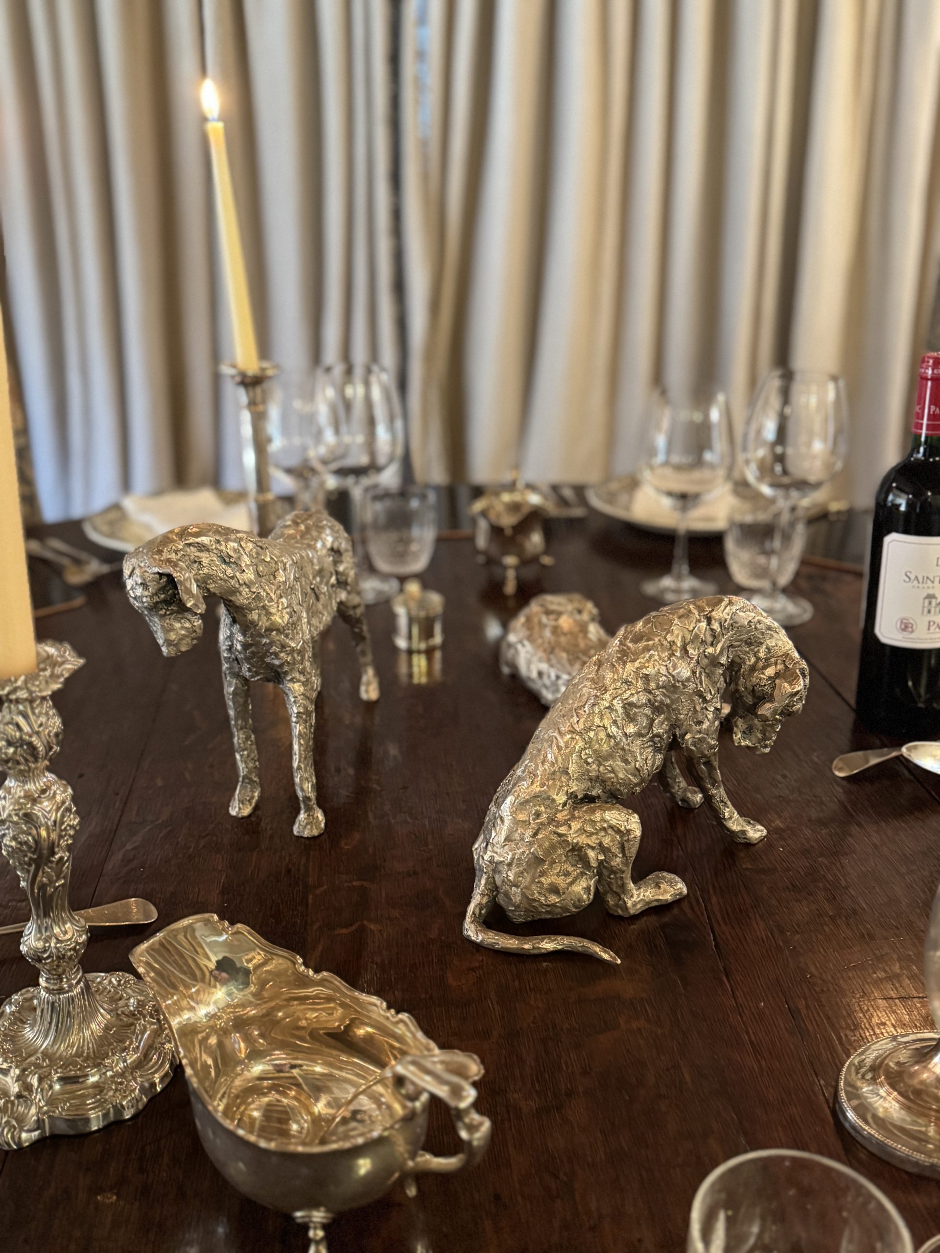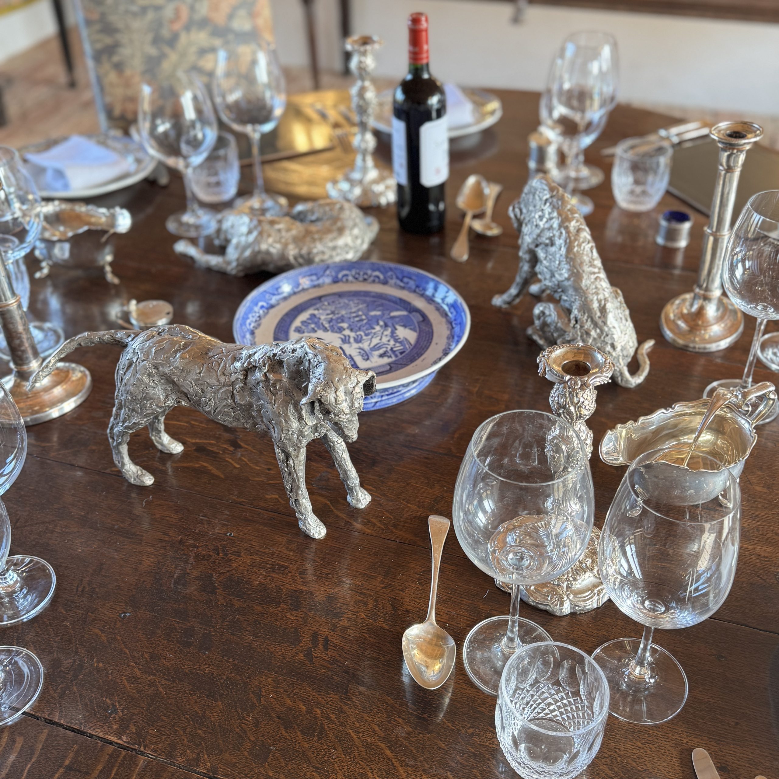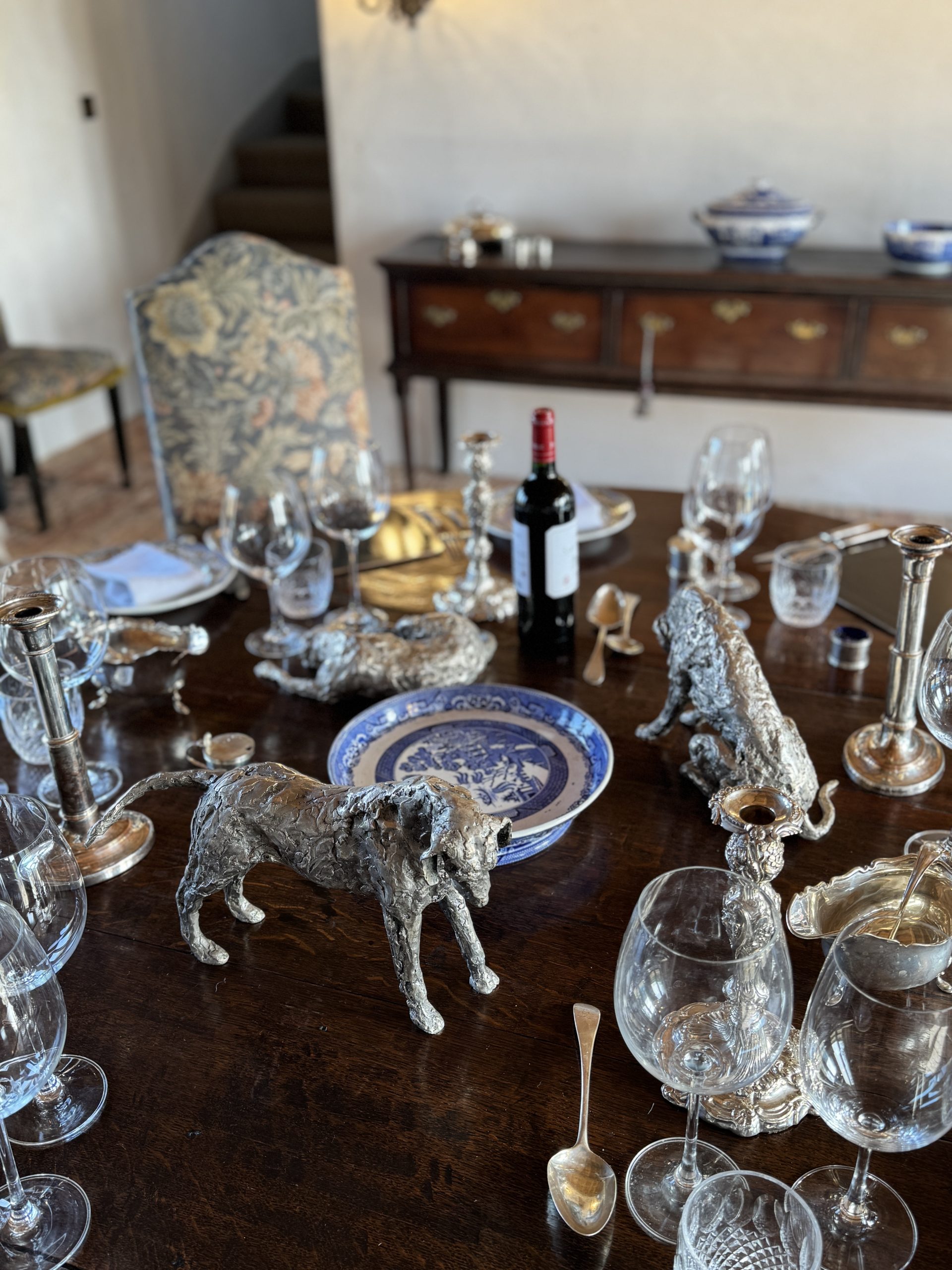 Jacquelines talent at depicting them is exceptional. They are so hound. Beautiful in Bronze, silvered bronze or silver, mounted or free standing. Generous scale but a good size to place anywhere. Utterly endearing – the most spectacular dining table art. Very versatile art to place capturing stunning movement and expression.